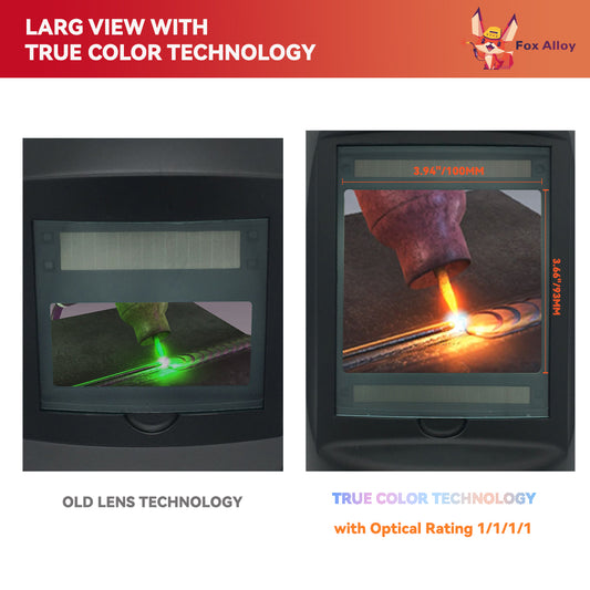 Fox Alloy Large Viewing 3.94'' * 3.66'' 1/1/1/1 Optical Clarity True Color Welding Helmet