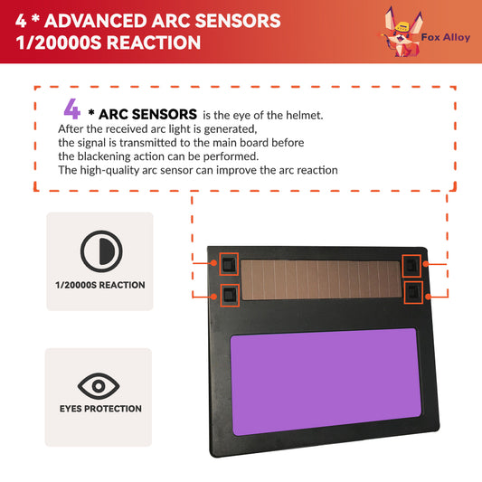 Fox Alloy Auto Darkening True Color Solar Power 4 Arc Sensors Welding Helmet