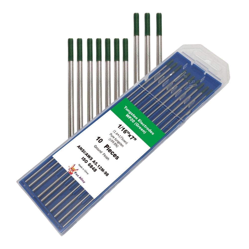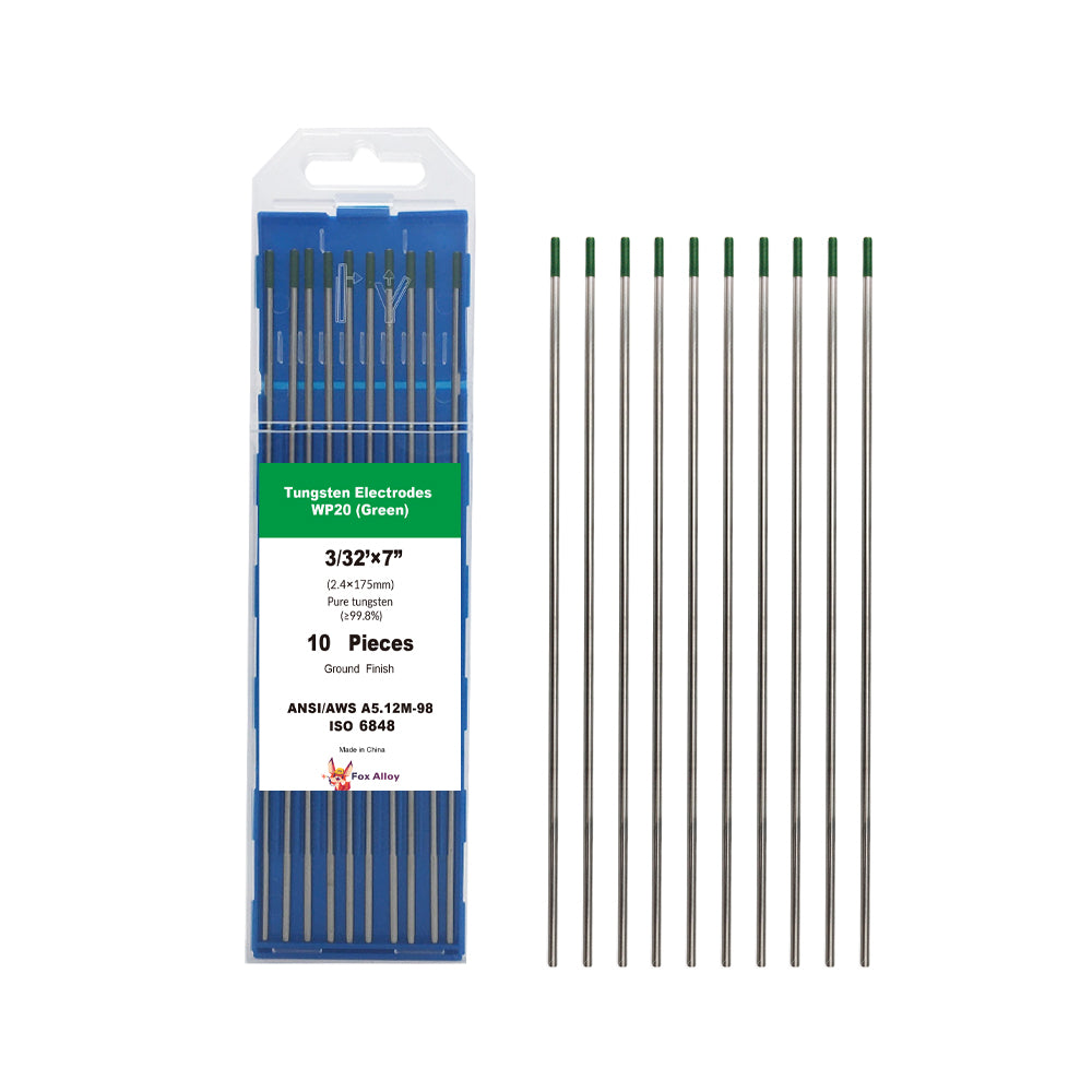 Fox Alloy 10pcs Pure Tungsten Electrode Green WP20 TIG Welding Accessories